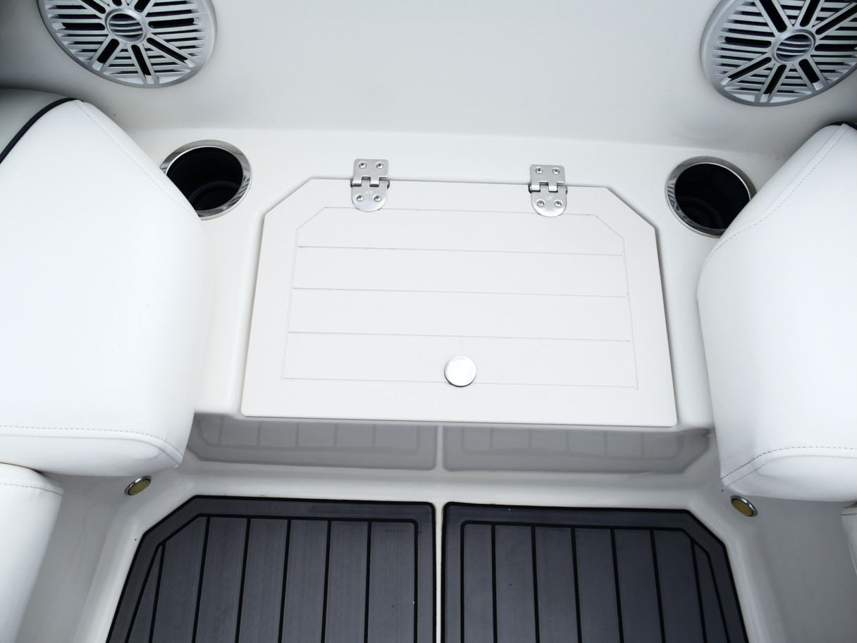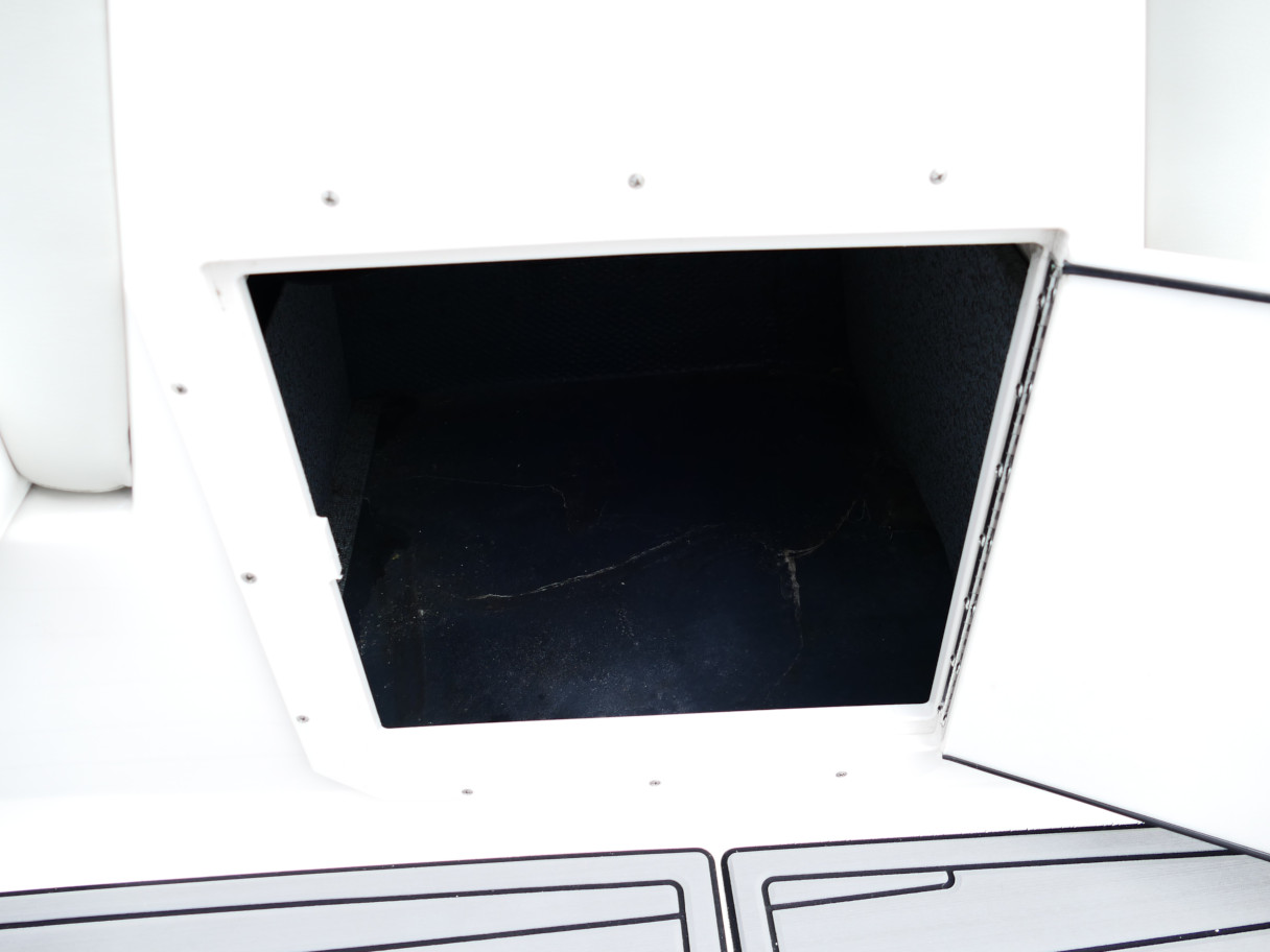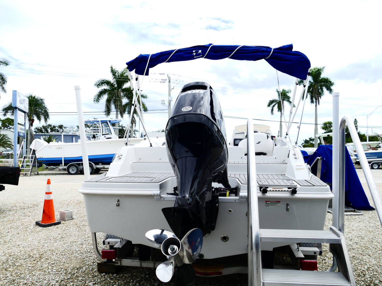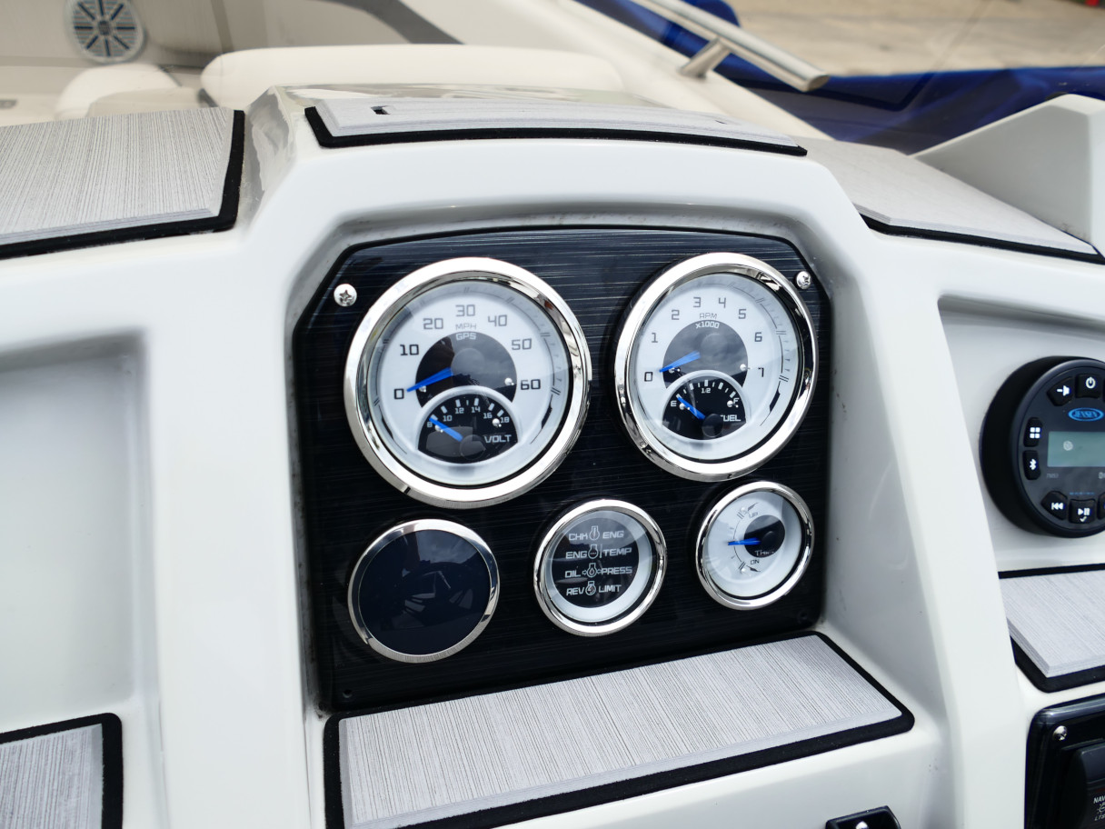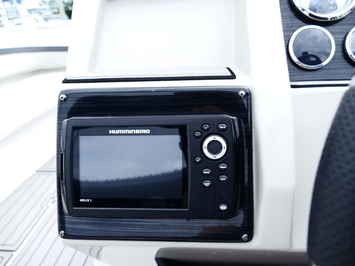 This gently used beauty is powered by a Suzuki DF200ATX5 Outboard with only 6 hours on the motor, this boat was well cared for and is in pristine condition! She includes features like a Jensen audio package with 4 speakers, SeaStar hydraulic steering, Humminbird Helix 5 flush mount GPS, Standard Horizon Eclipse ship-to-shore radio, docking lights, bow & stern livewells, transom shower, pressurized water system, snap-in marine mat, dual battery system, trim gauge, table kit, Bimini top, cockpit cover, and much more. Come see her in person before someone else snatches this deal up!