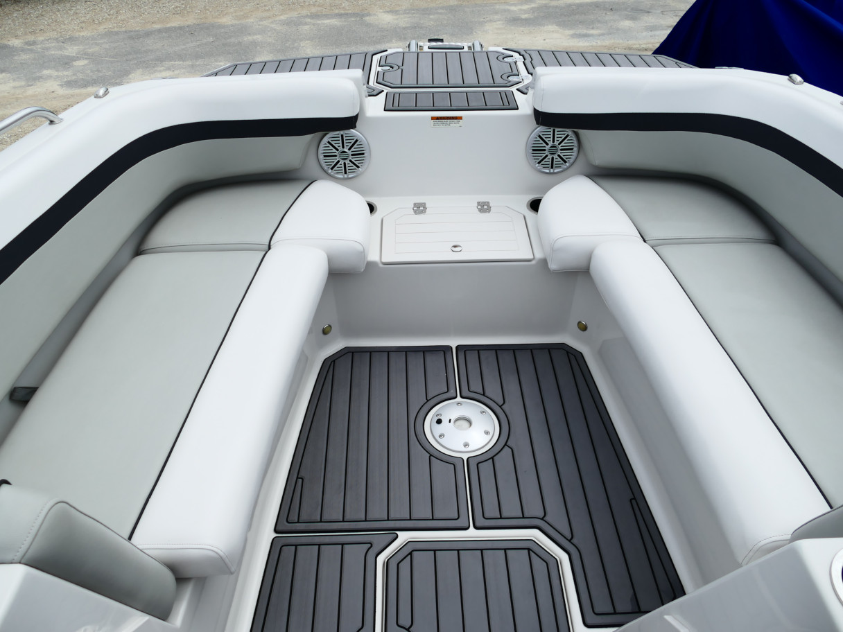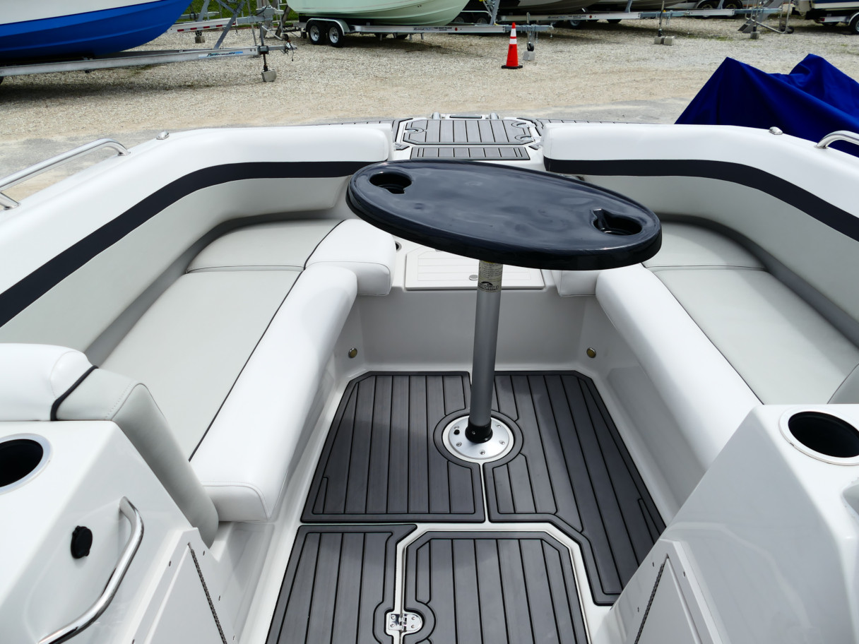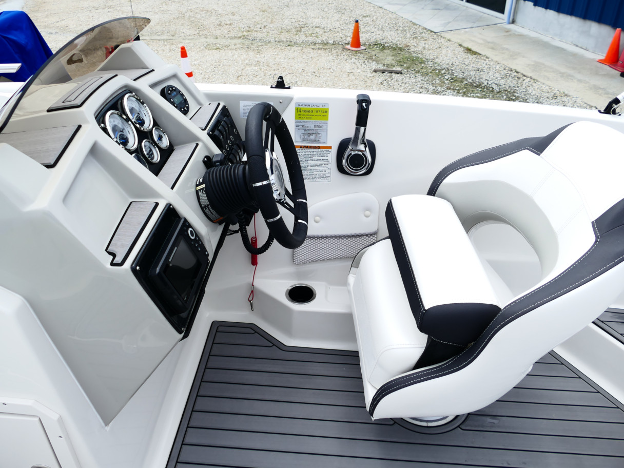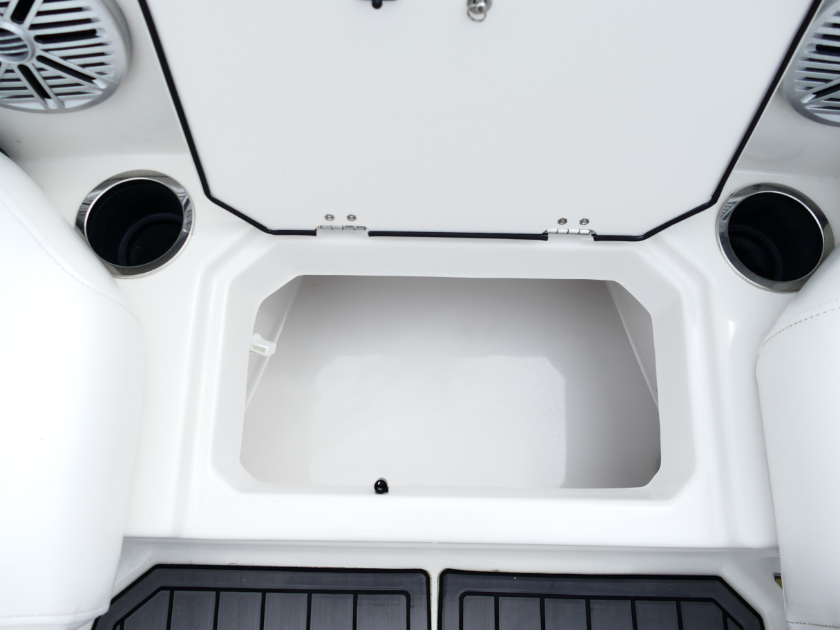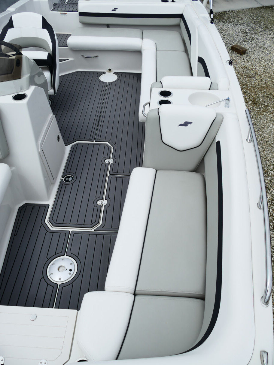 This gently used beauty is powered by a Suzuki DF200ATX5 Outboard with only 6 hours on the motor, this boat was well cared for and is in pristine condition! She includes features like a Jensen audio package with 4 speakers, SeaStar hydraulic steering, Humminbird Helix 5 flush mount GPS, Standard Horizon Eclipse ship-to-shore radio, docking lights, bow & stern livewells, transom shower, pressurized water system, snap-in marine mat, dual battery system, trim gauge, table kit, Bimini top, cockpit cover, and much more. Come see her in person before someone else snatches this deal up!