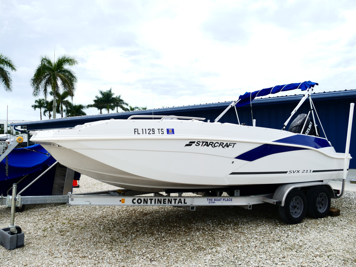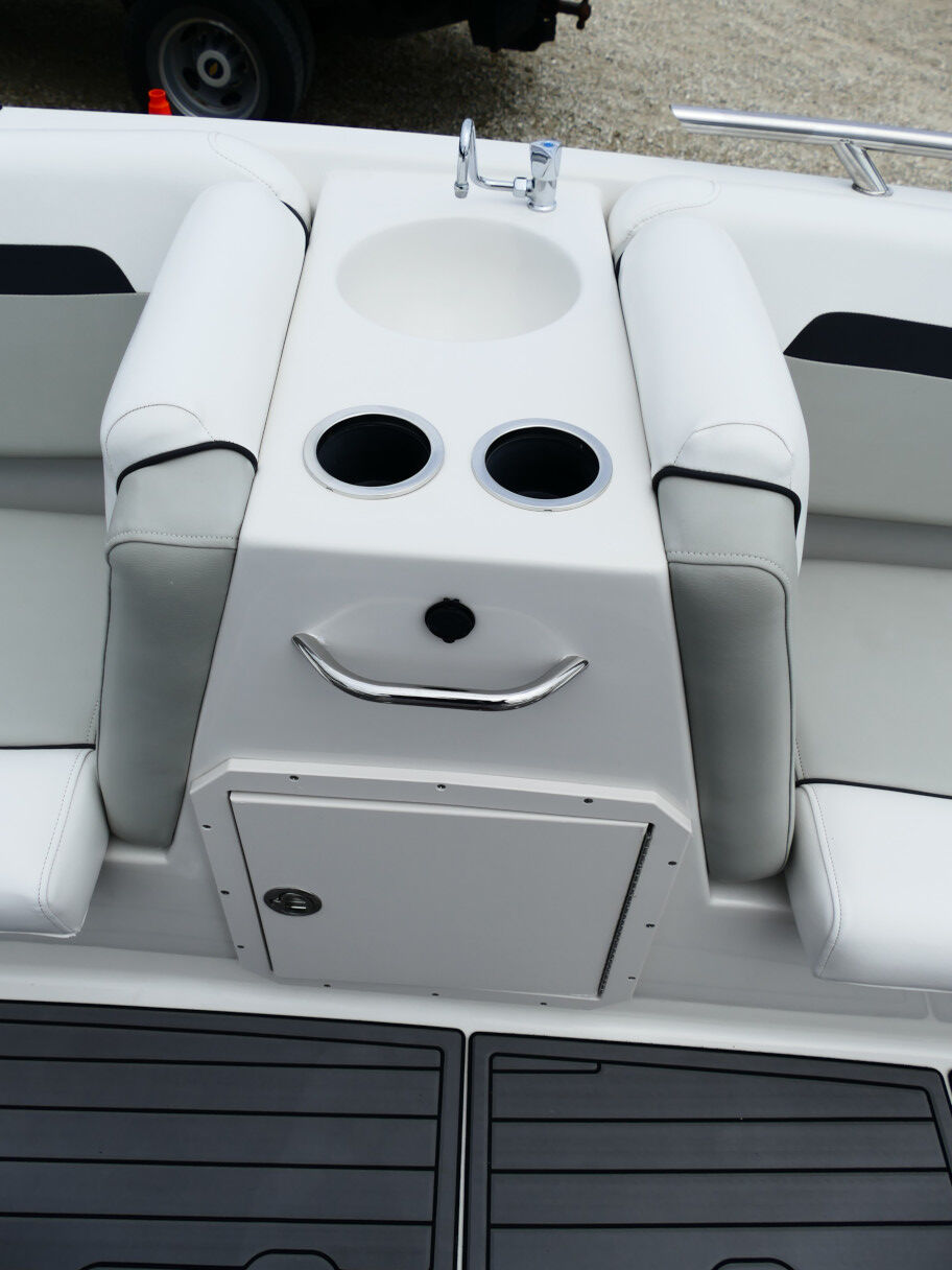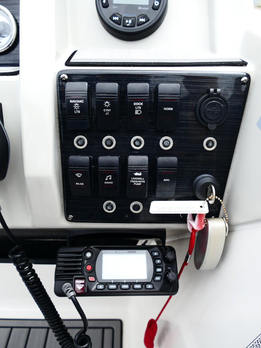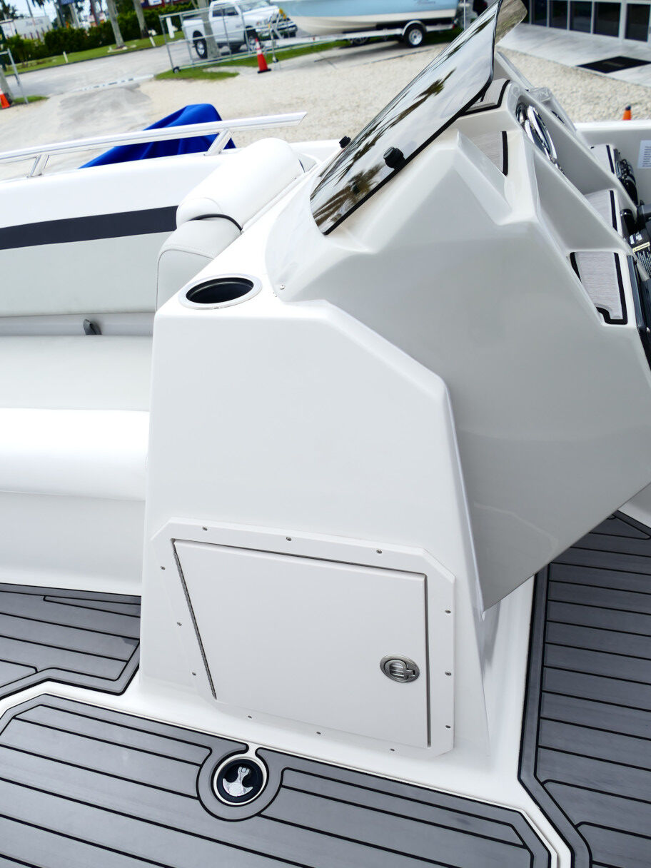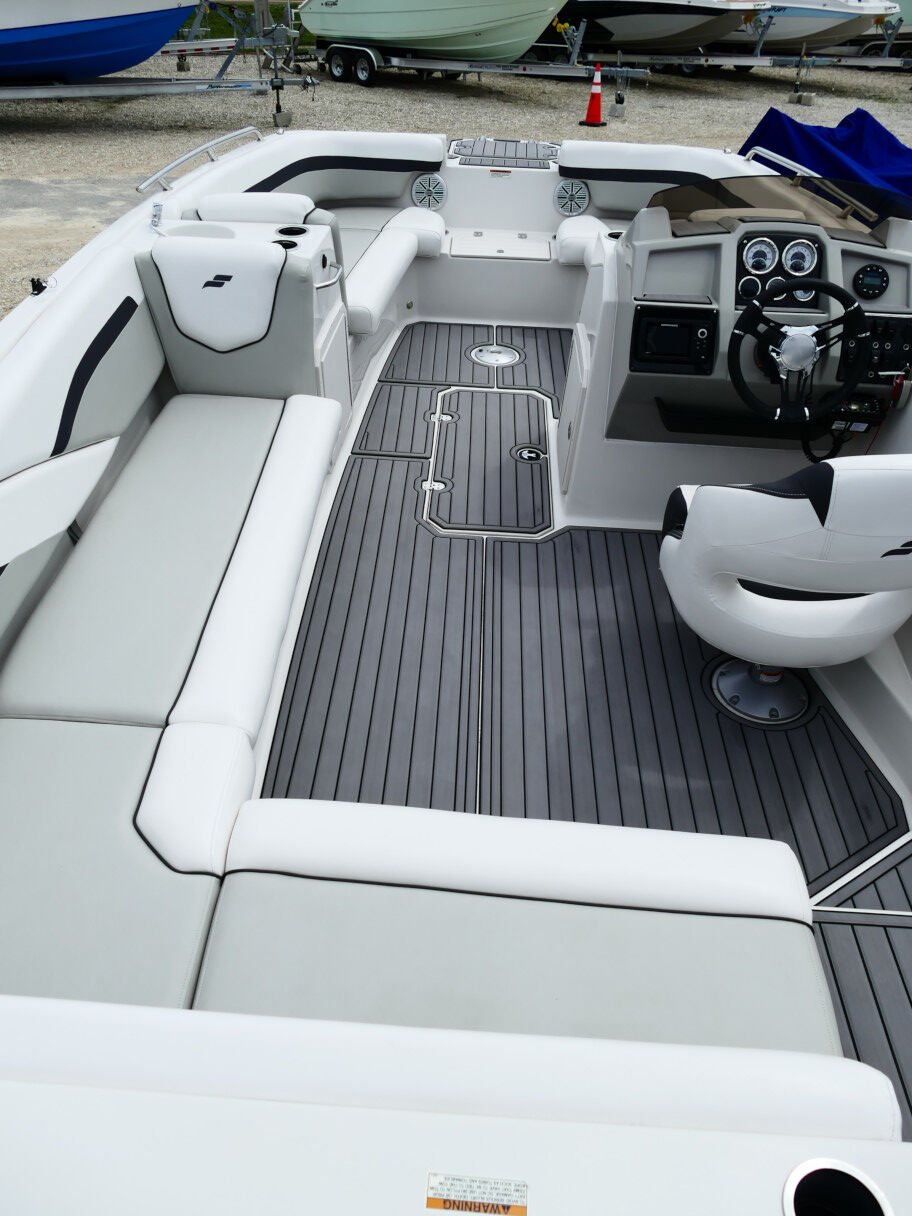 This gently used beauty is powered by a Suzuki DF200ATX5 Outboard with only 6 hours on the motor, this boat was well cared for and is in pristine condition! She includes features like a Jensen audio package with 4 speakers, SeaStar hydraulic steering, Humminbird Helix 5 flush mount GPS, Standard Horizon Eclipse ship-to-shore radio, docking lights, bow & stern livewells, transom shower, pressurized water system, snap-in marine mat, dual battery system, trim gauge, table kit, Bimini top, cockpit cover, and much more. Come see her in person before someone else snatches this deal up!