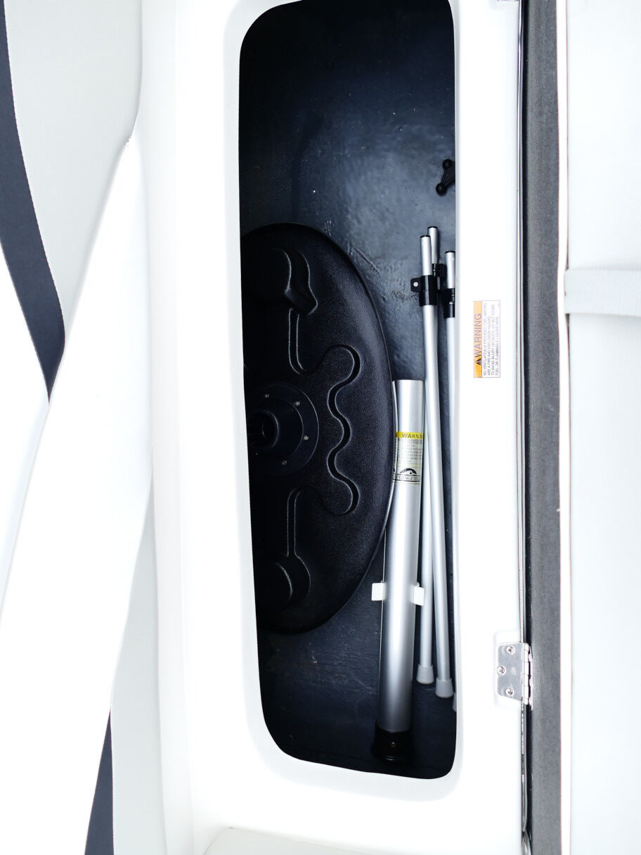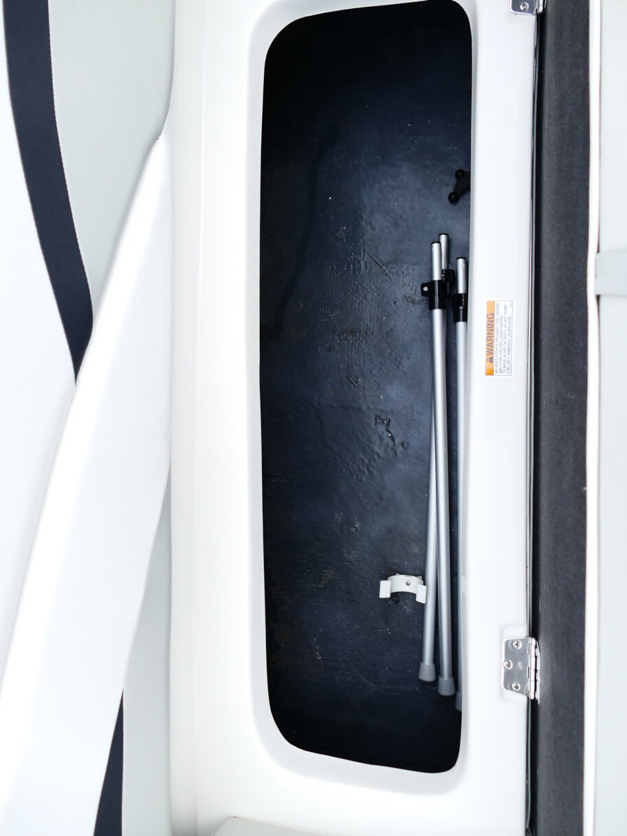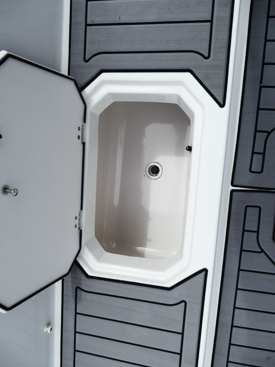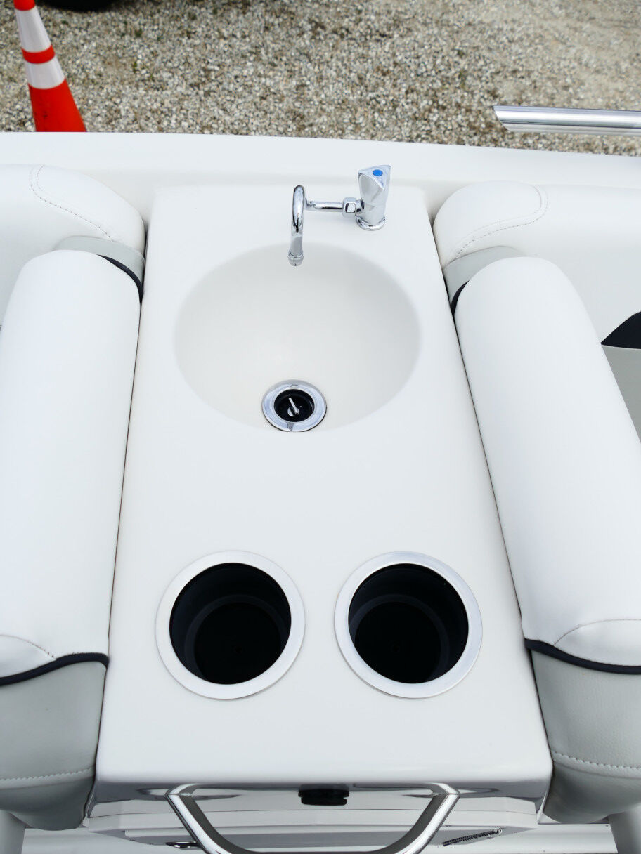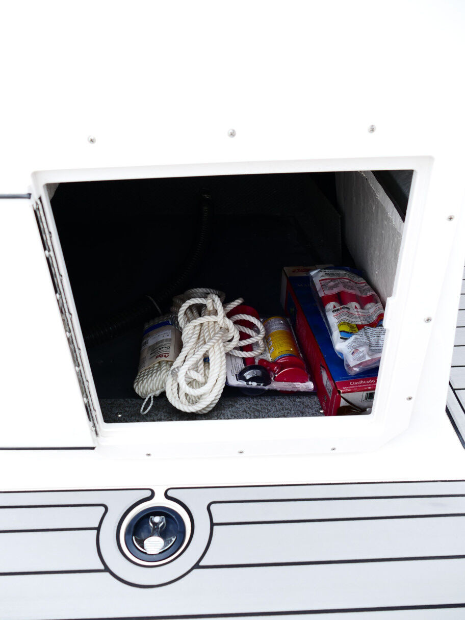 This gently used beauty is powered by a Suzuki DF200ATX5 Outboard with only 6 hours on the motor, this boat was well cared for and is in pristine condition! She includes features like a Jensen audio package with 4 speakers, SeaStar hydraulic steering, Humminbird Helix 5 flush mount GPS, Standard Horizon Eclipse ship-to-shore radio, docking lights, bow & stern livewells, transom shower, pressurized water system, snap-in marine mat, dual battery system, trim gauge, table kit, Bimini top, cockpit cover, and much more. Come see her in person before someone else snatches this deal up!