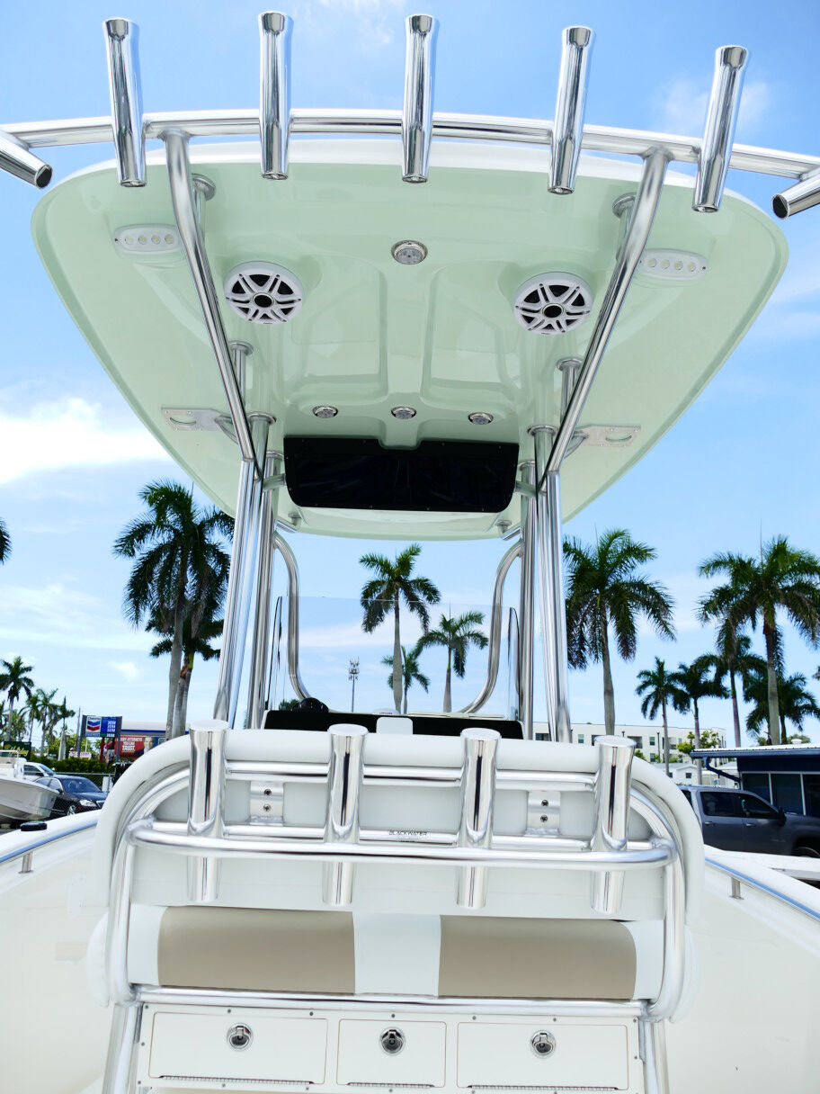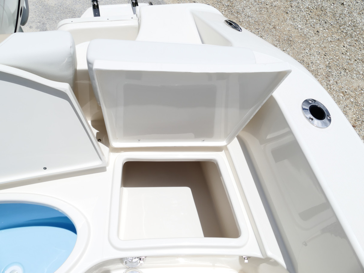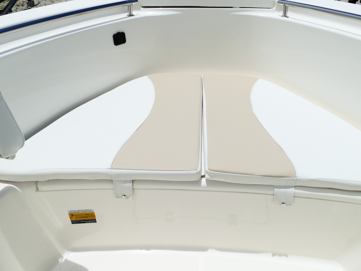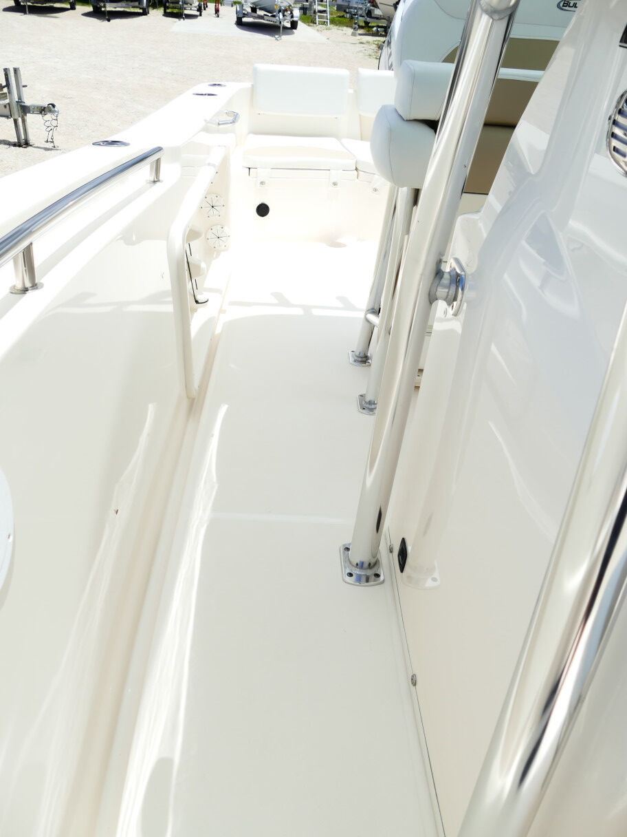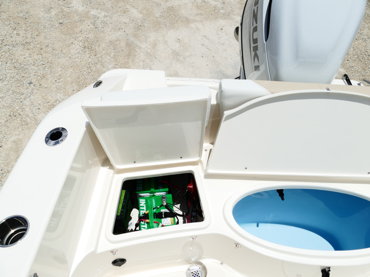 Powered by a Suzuki DF250TXW5 outboard motor. Featuring deluxe hard top with radio box and spreaders, Clarion stereo & 4 speakers, leanpost tackle / cooler slide, trolling motor plug, Dual battery switch, Dual Pro 2 Bank battery charger, bow cushion, forward facing backrest, swim platform, raw water washdown, lighted compass and more!