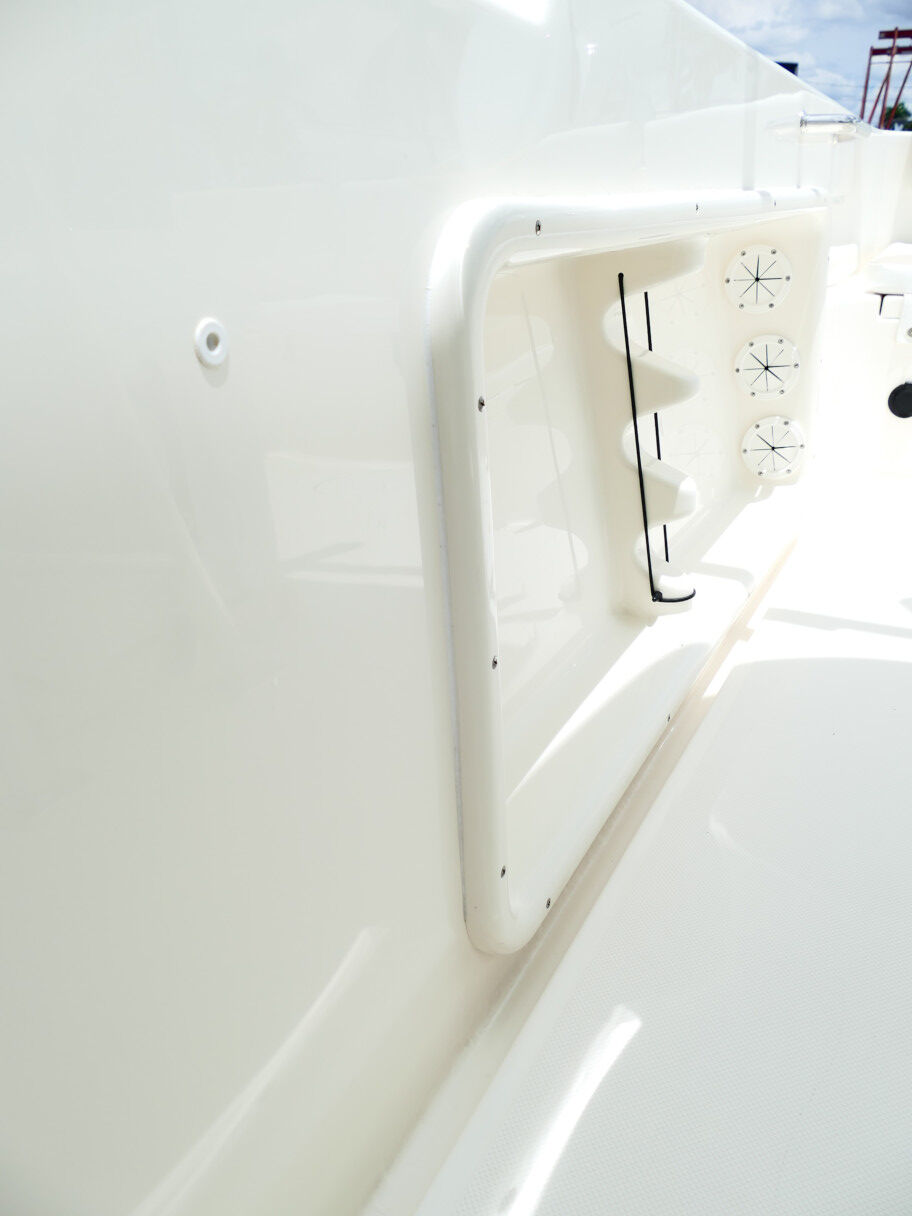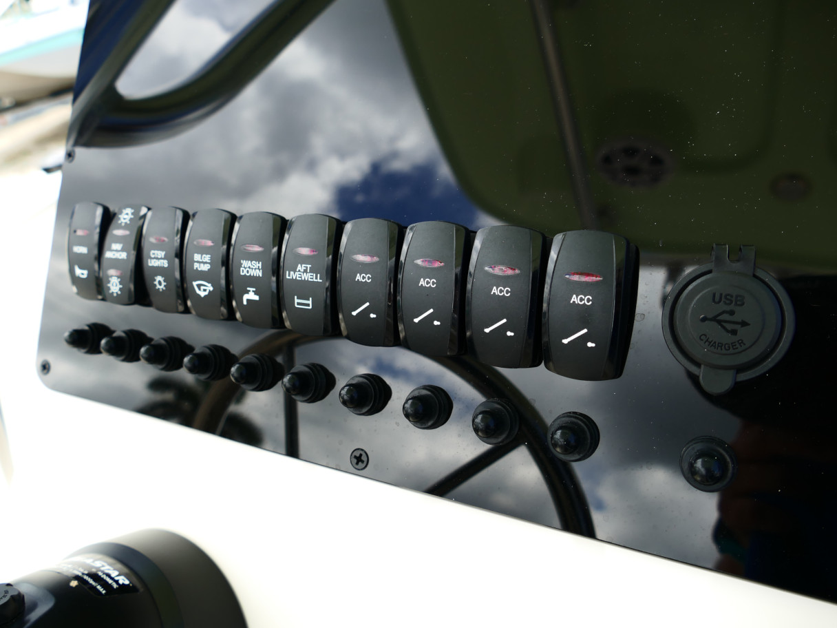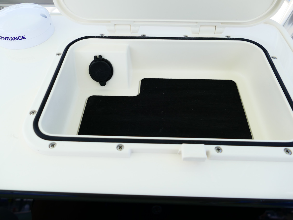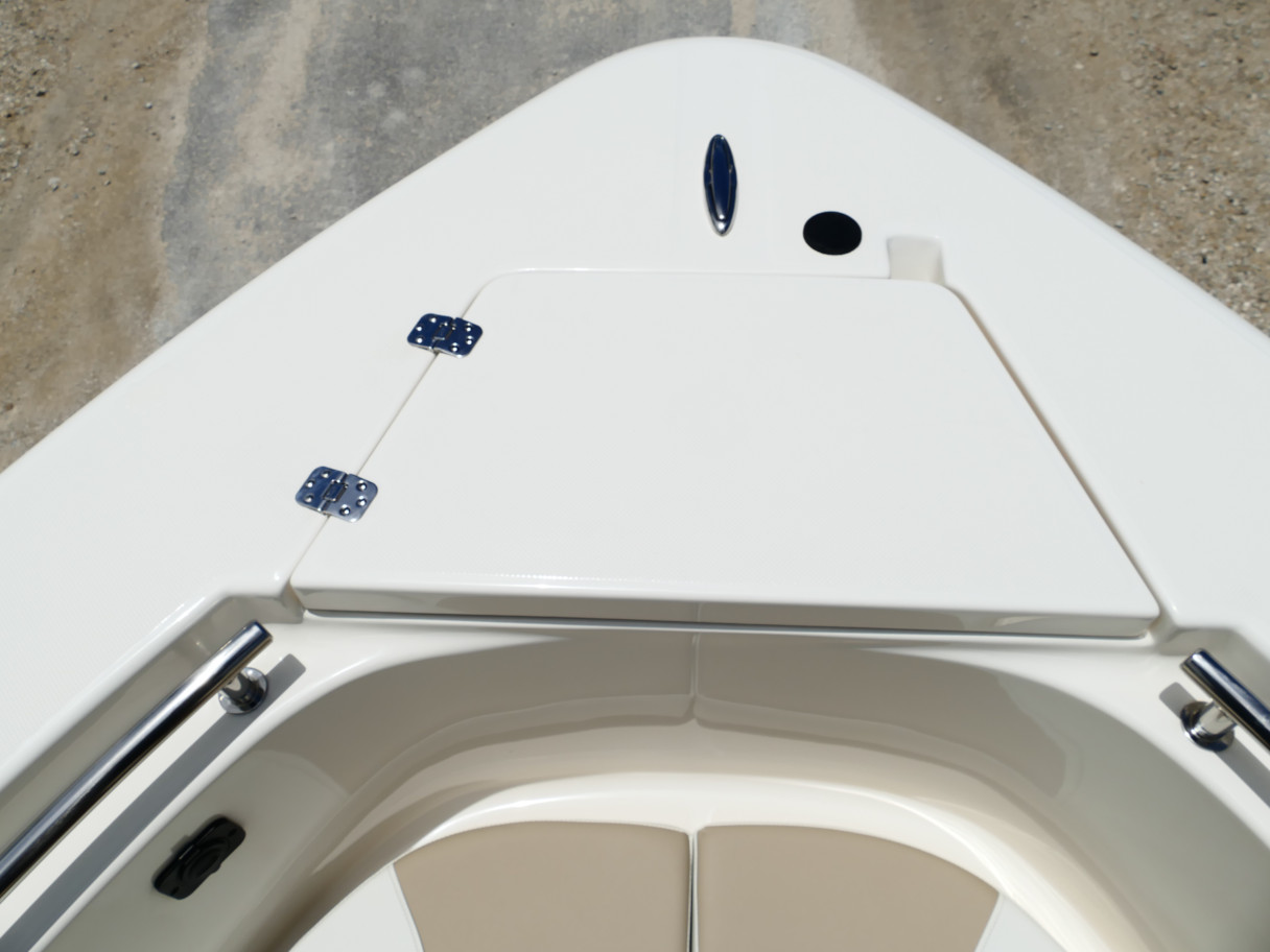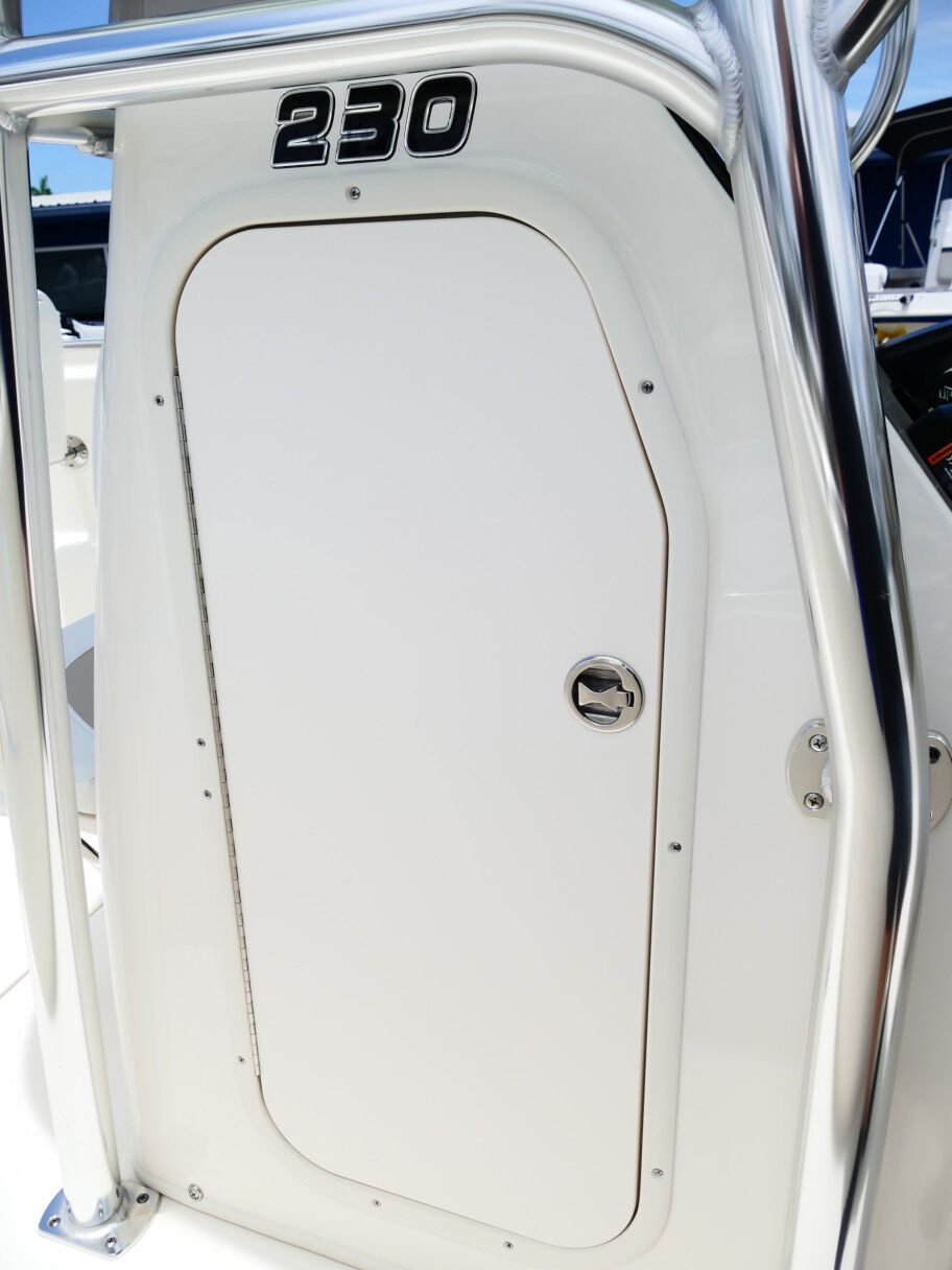 Powered by a Suzuki DF250TXW5 outboard motor. Featuring deluxe hard top with radio box and spreaders, Clarion stereo & 4 speakers, leanpost tackle / cooler slide, trolling motor plug, Dual battery switch, Dual Pro 2 Bank battery charger, bow cushion, forward facing backrest, swim platform, raw water washdown, lighted compass and more!