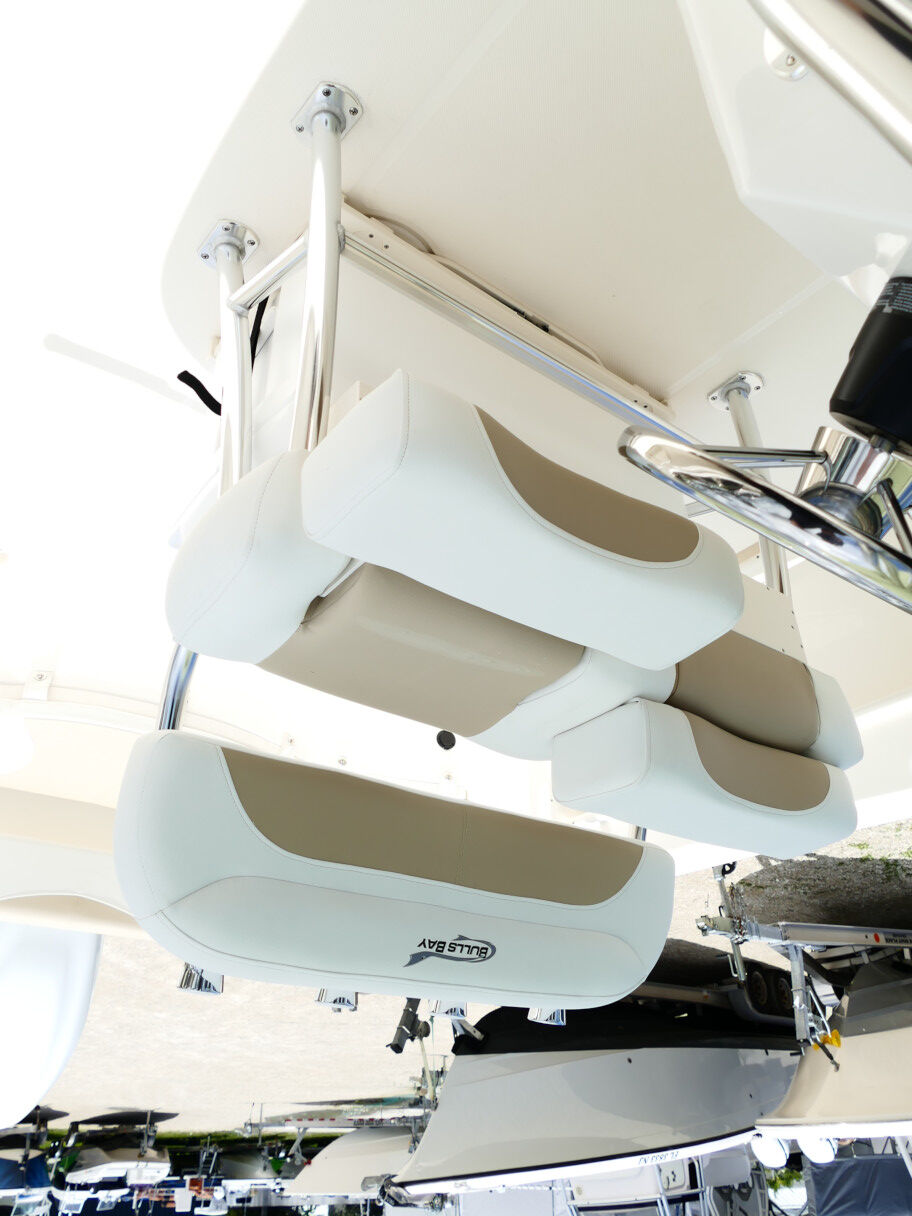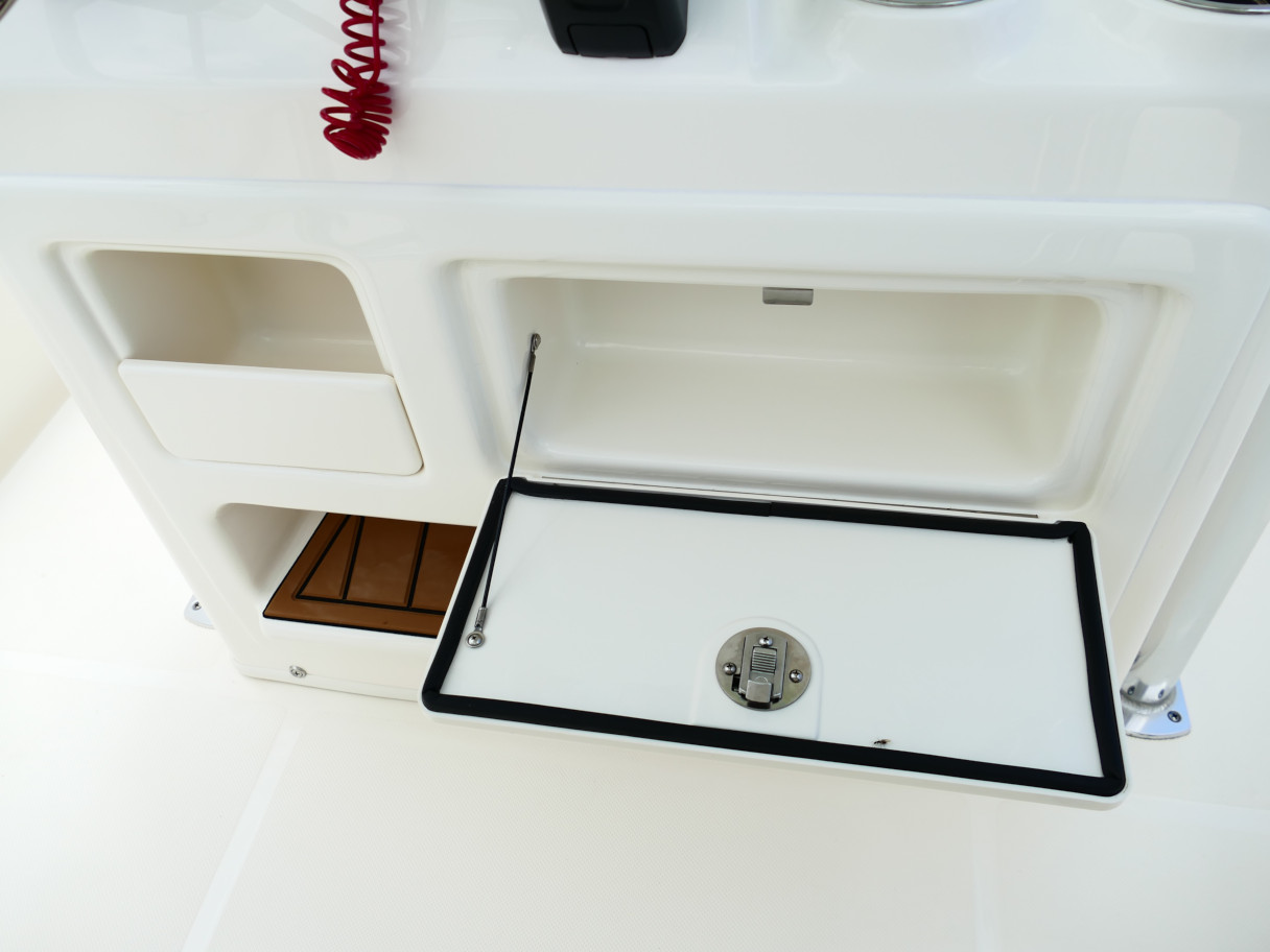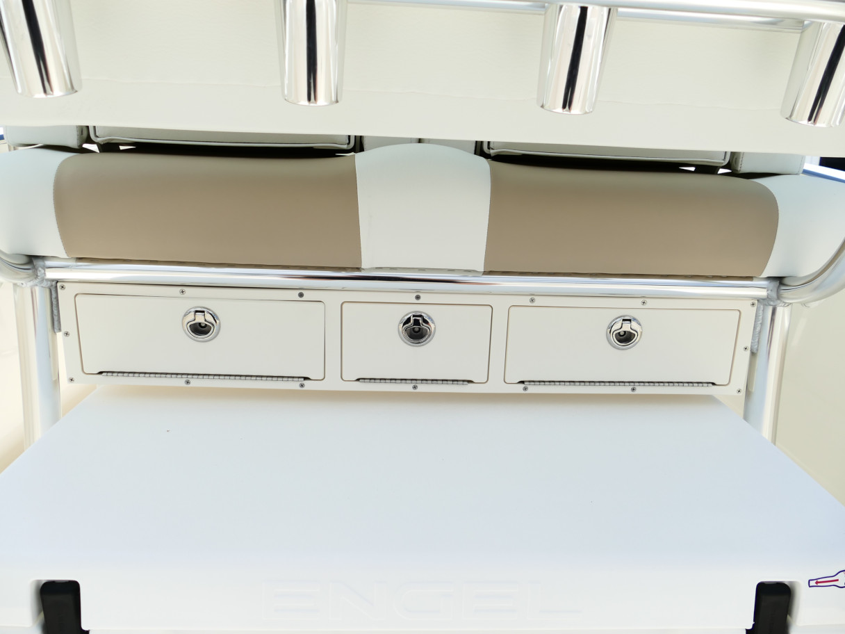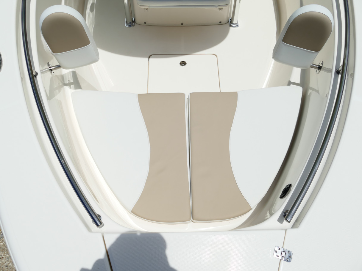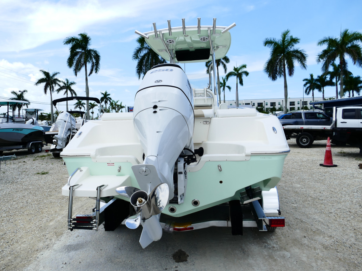 Powered by a Suzuki DF250TXW5 outboard motor. Featuring deluxe hard top with radio box and spreaders, Clarion stereo & 4 speakers, leanpost tackle / cooler slide, trolling motor plug, Dual battery switch, Dual Pro 2 Bank battery charger, bow cushion, forward facing backrest, swim platform, raw water washdown, lighted compass and more!