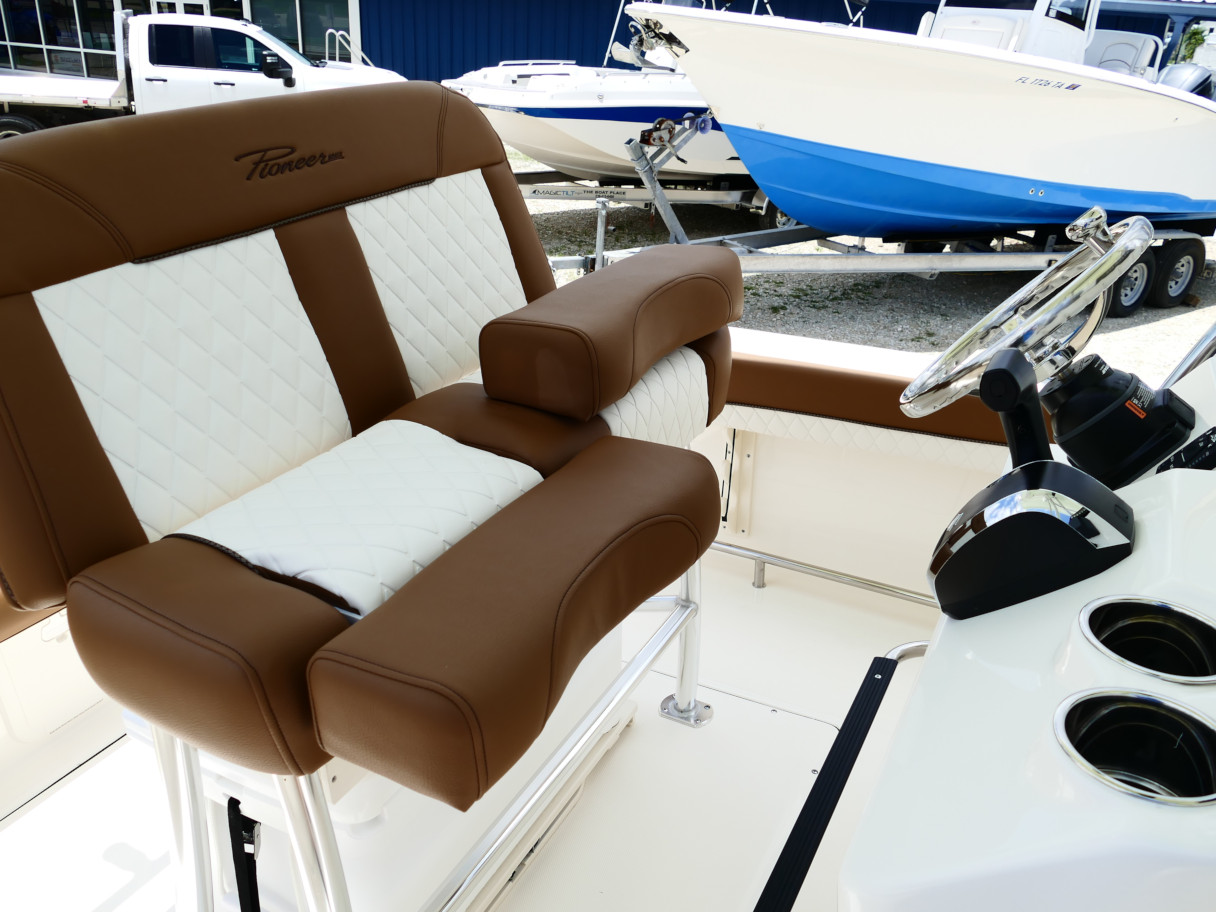 This new 2026 Pioneer 222 Islander is powered with a DF250APXW5 Suzuki Outboard! This boat has a Abaco Green hull, stainless steel props, JL Audio stereo & 4 speakers, Dual Pro 2 bank battery charger, trolling motor plug, bow table with cushion, raw & fresh water wash down kits, Deluxe hard top with radio box & spreaders, Marine toilet with overboard discharge, 2nd livewell, leanpost tackle/cooler (65qts), underwater LED lights & much more!